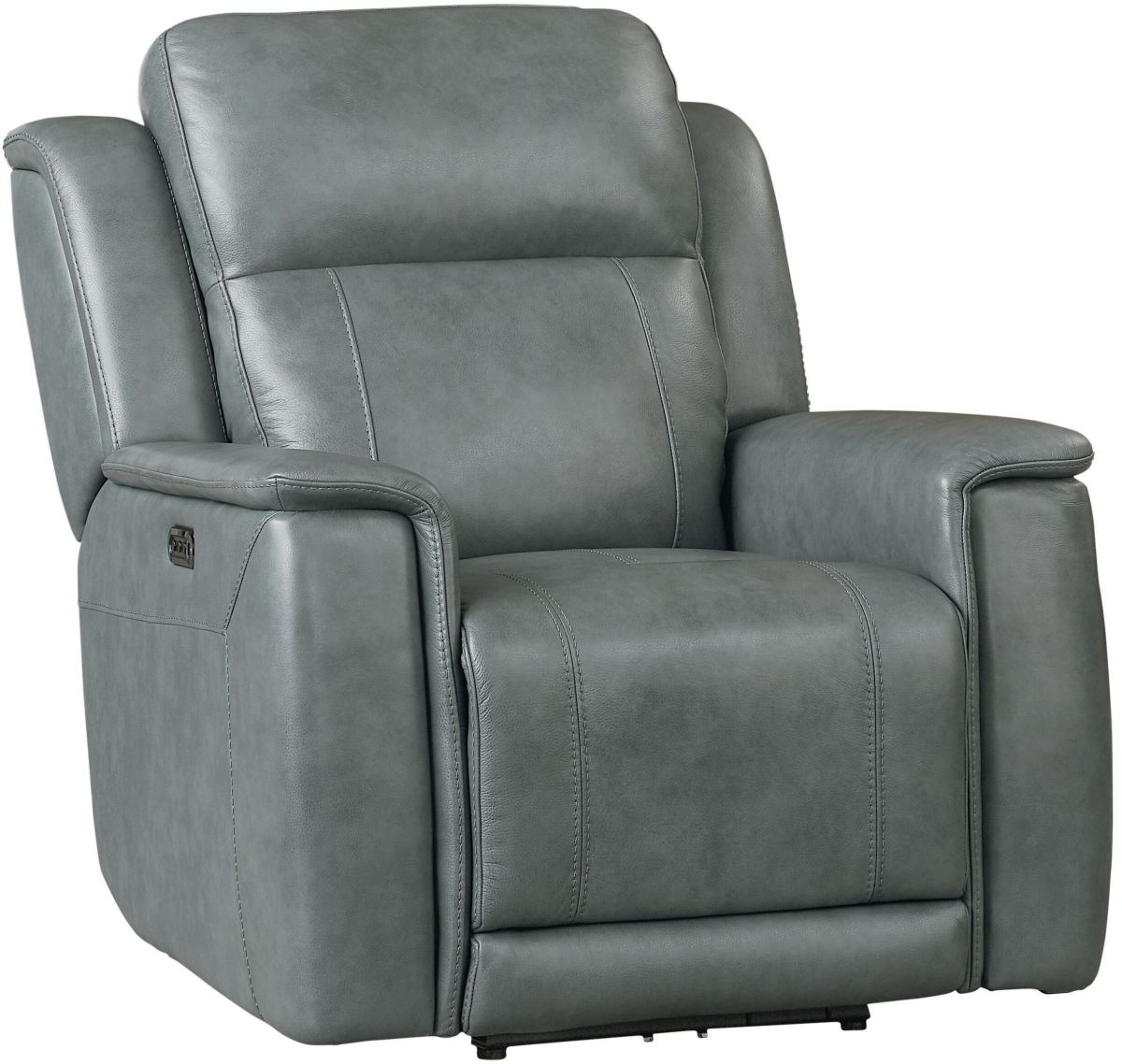 The Bassett® Furniture Conover Blue Gray Leather Wallsaver Power Recliner blends plush comfort with modern function. Upholstered in rich blue-gray leather, it features a space-saving wallsaver design, smooth power reclining, and adjustable headrest support, offering the perfect lounging experience in style and convenience.Read More