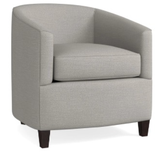 The Maxwell accent chair is the perfect small-space chair that will coordinate with any other room decor and furniture. This smaller-scale, crescent-shaped (or barrel) accent chair features a tight back and tailored, sloped arms with a boxed, welted seat cushion and tapered, wood legs.Read More