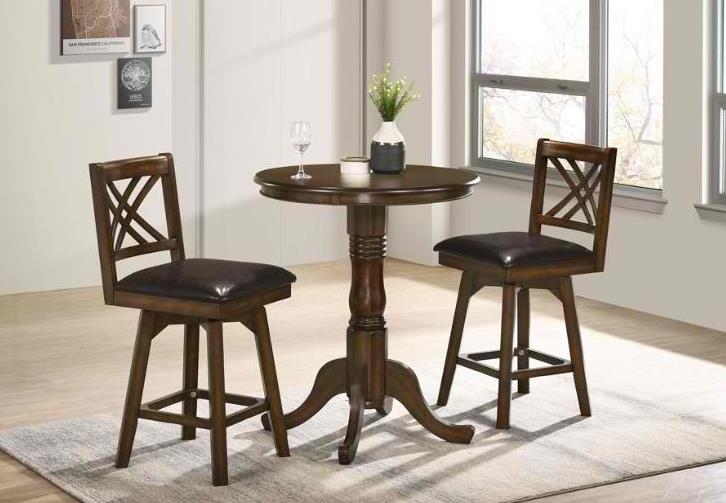 Elevate your dining space with this Round Pub Table from ECI Furniture Catalog. Shown in distressed walnut wood finish. Make a bold statement by incorporating this stunning furniture into your home.Read More