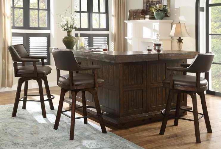 Elevate your dining space with this Return Bar from Gettysburg Collection. Shown in a distressed brown wood finish. Make a bold statement by incorporating this stunning furniture into your home.Read More