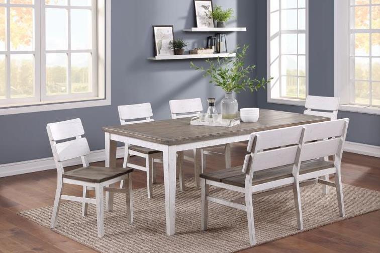 Elevate your dining space with this Leg Dining Table from La Sierra Collection. Shown in a heavily distressed white wood finish and grayish-brown washed top. Make a bold statement by incorporating this stunning furniture into your home.Read More