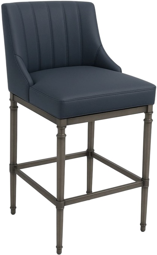 Add a bold touch to your counter area with the Marvin upholstered counter stool. Its antique pewter metal frame pairs beautifully with the rich Night Life Blue seat, offering comfort, color, and style. A supportive back and sturdy footrest complete this elegant everyday piece.Read More