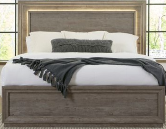 The Horizons panel bed is the perfect addition to any room. Crafted of a rubberwood solid frame and paper laminate, this piece features a unique floating panel headboard, hook on rails, and inset LED lights that can be turned on and off with the push of a button, all anchored by a beautiful plinth base.Read More