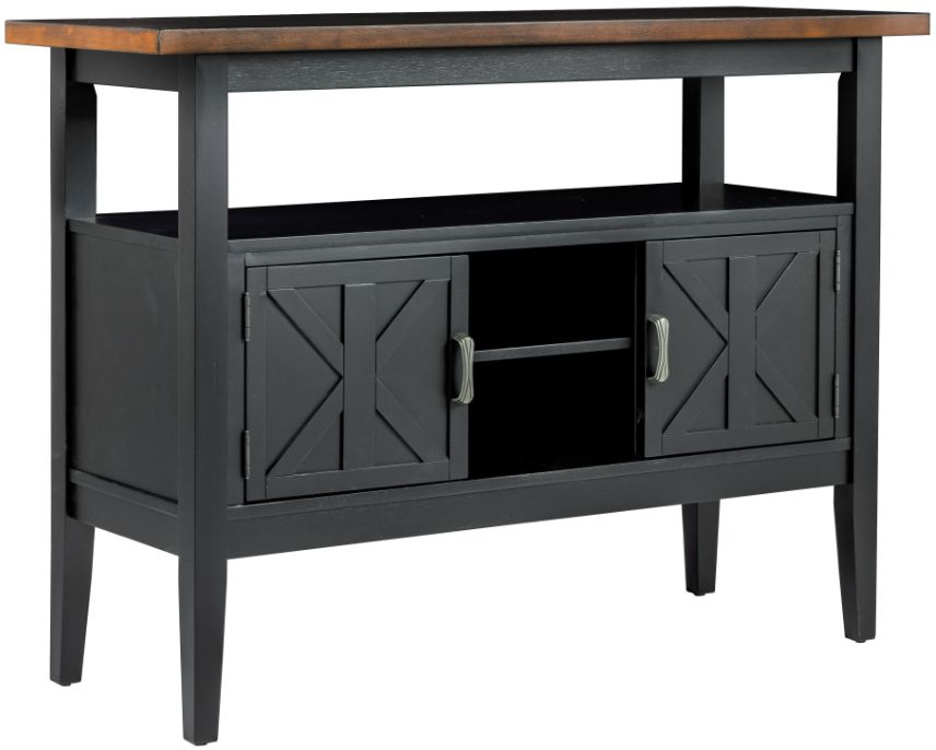 Elegant Two-Tone Finish: The lighter tone of the server top accentuates the natural wood grain, showcasing the craftsmanship in every detail. Contrasted by a deep, dark frame, this bold pairing not only unifies the overall design but also adds a striking visual impact. This carefully balanced color scheme makes the dining set a versatile choice, effortlessly complementing a wide range of interior styles—from sleek modern and contemporary to warm rustic and traditional