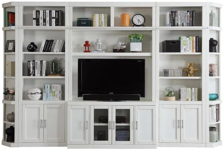 This entertainment wall has the perfect mixture of storage and fun. Place your TV in the middle of your display and storage bookshelves. Show off your style and entertain with class with this 6 piece large entertainment wall.Read More